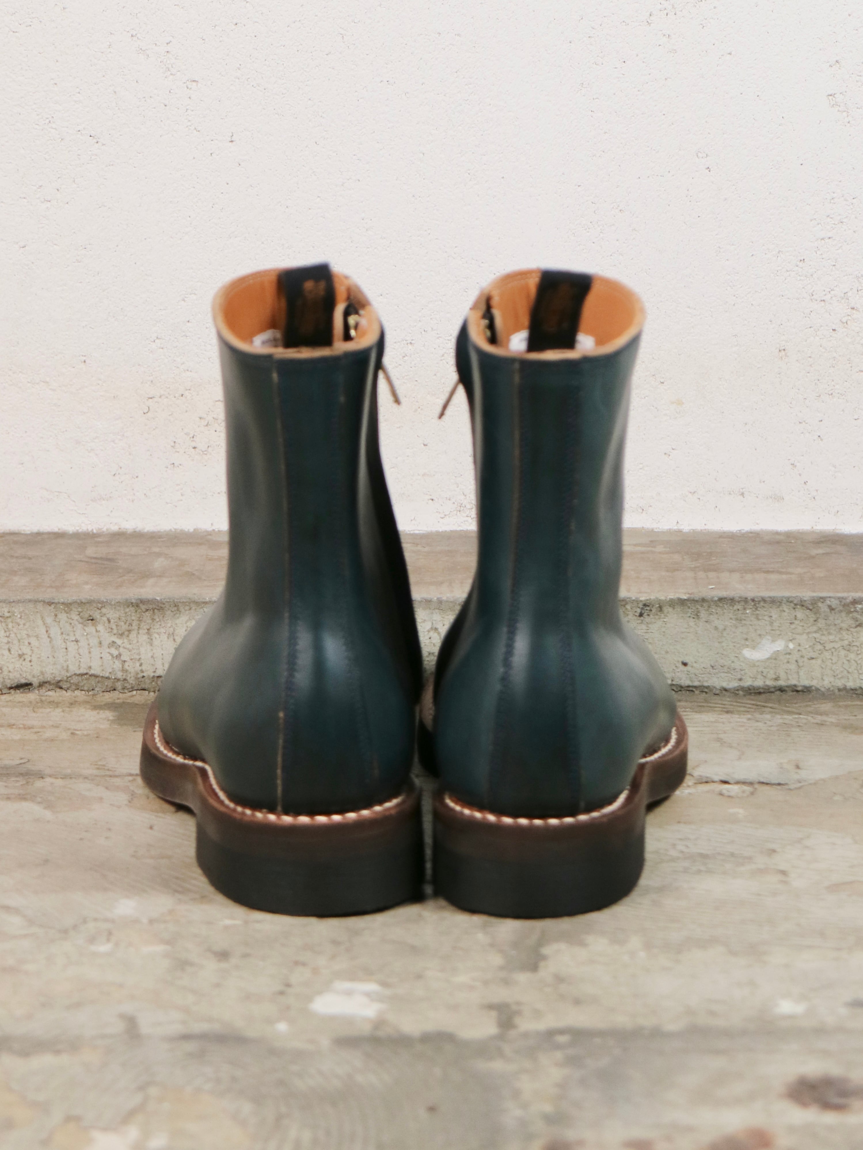 ※厳選して革の選定をおこなっておりますが、履き込んだ際に左右差のあるシワが入ります。これは革の性質上起こりうる事ですので、製品自体に問題はございません。