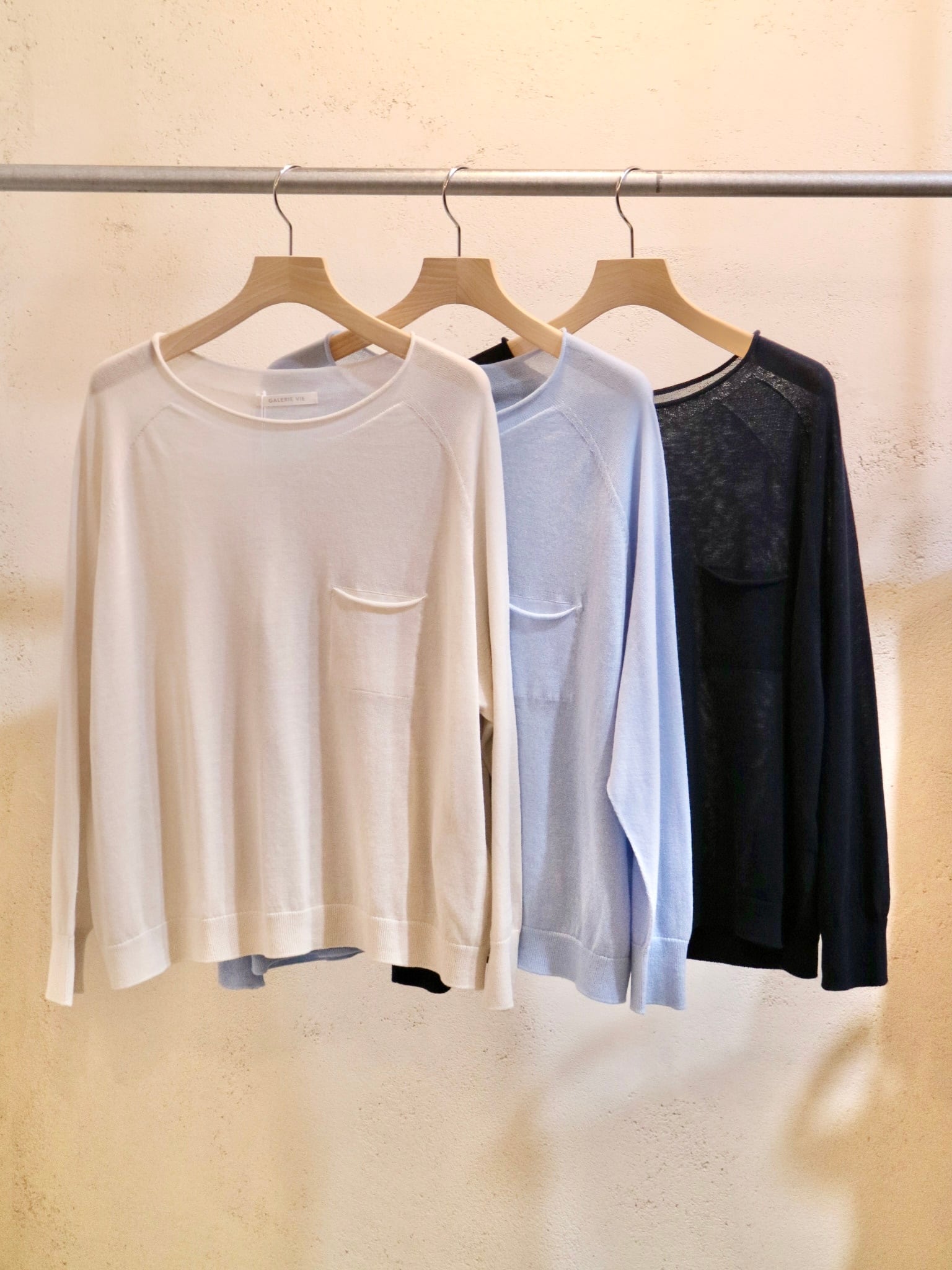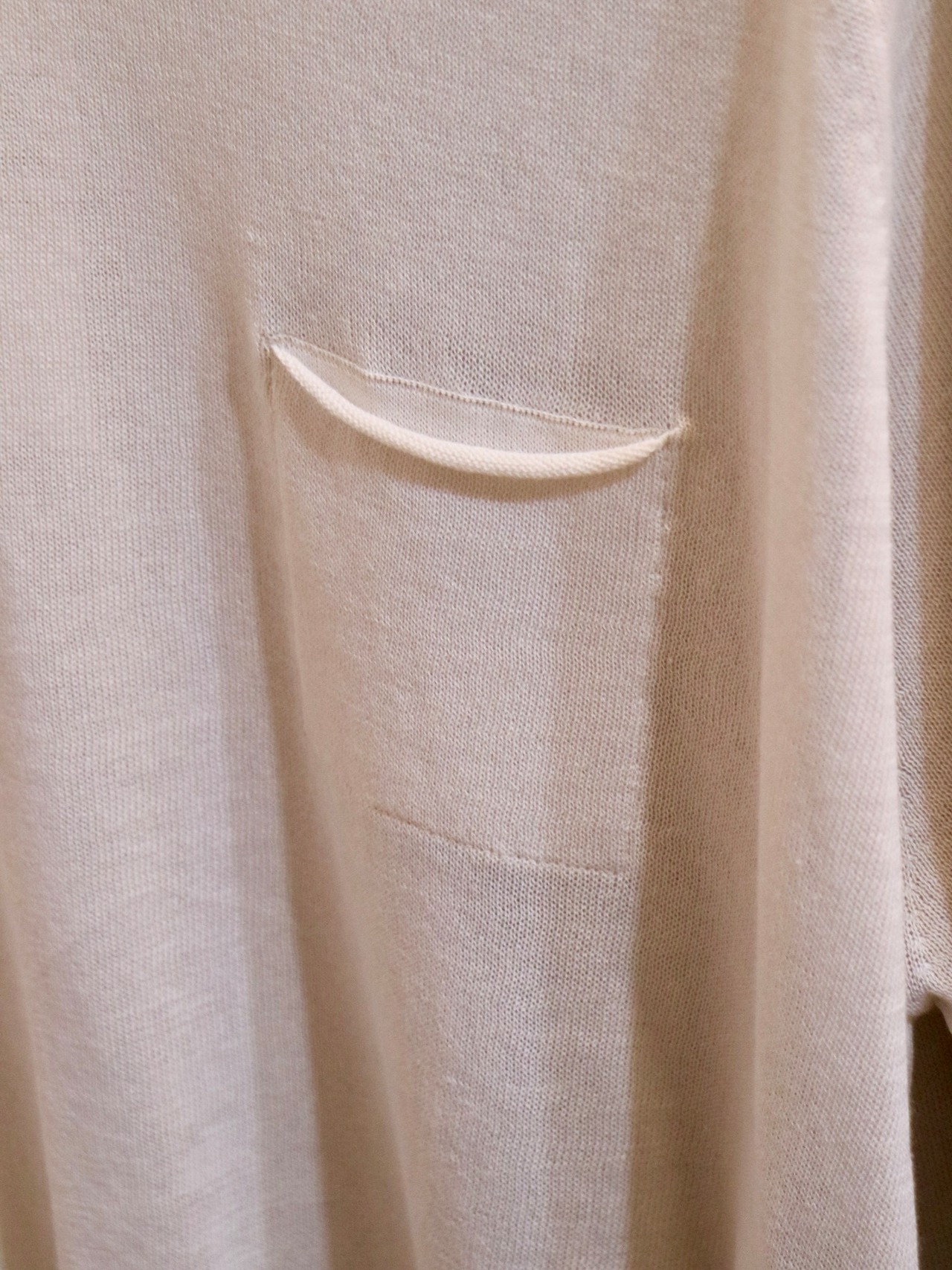 クルーネックのネームですが横に少し空いたボートネックタイプで胸元の小さなポケットがかわいくポイントになる一枚です。