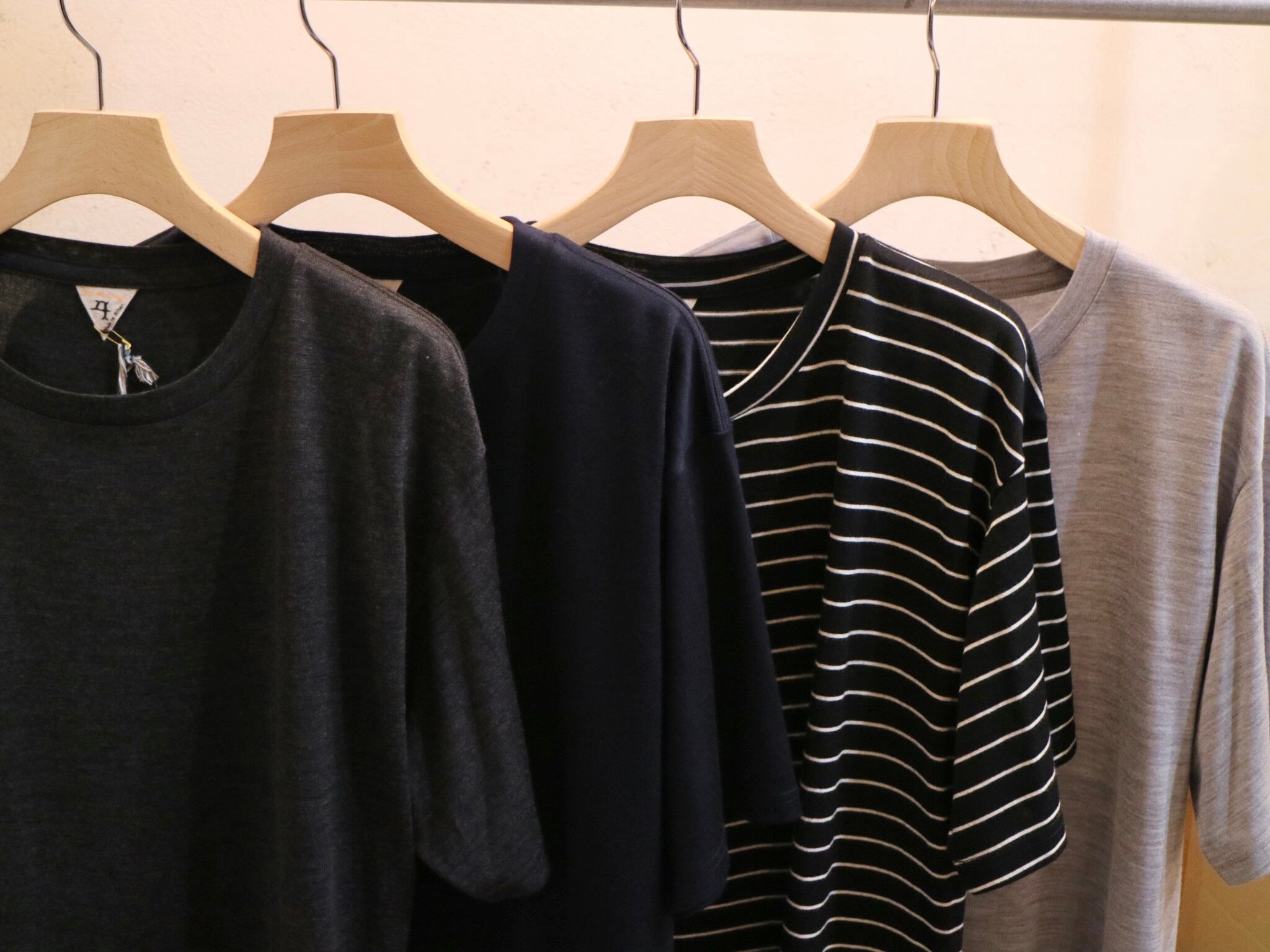 ニュージーランドメリノウール100%の天竺(Tシャツ編み)のこの生地はかなりチクチクしづらくインナーとして1枚で着てもノンストレス。脇も丸胴になっていますのでその辺りでの着心地良さもポイントです。