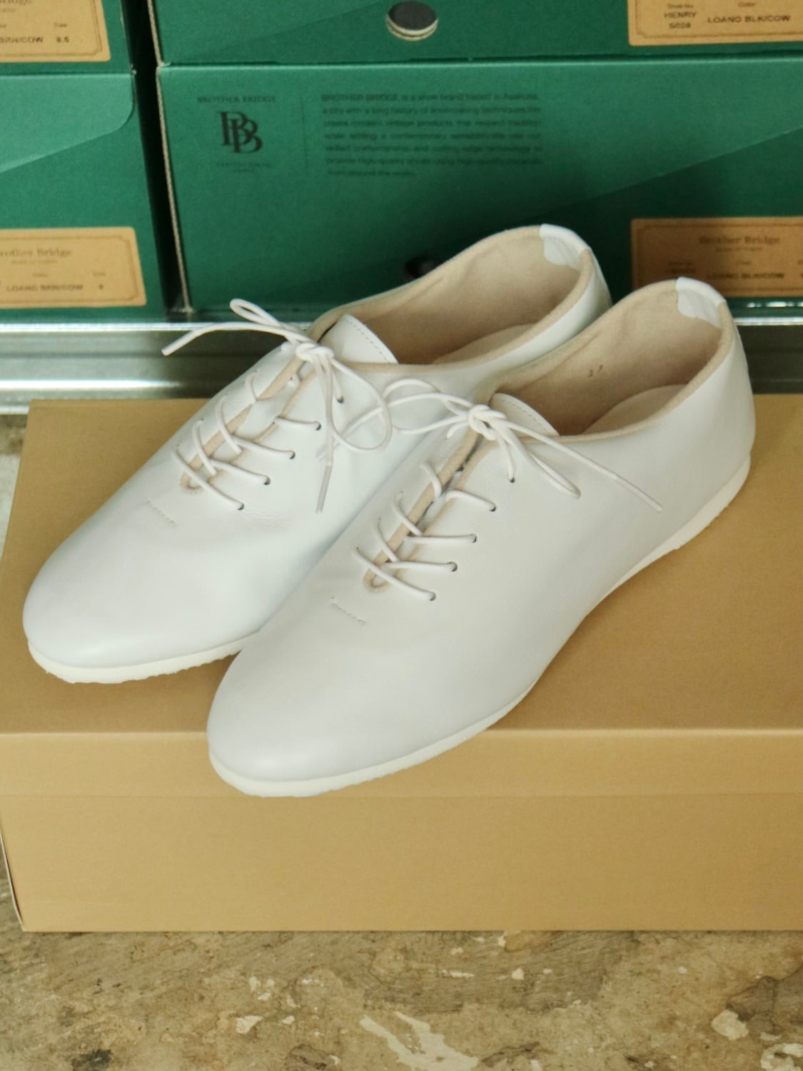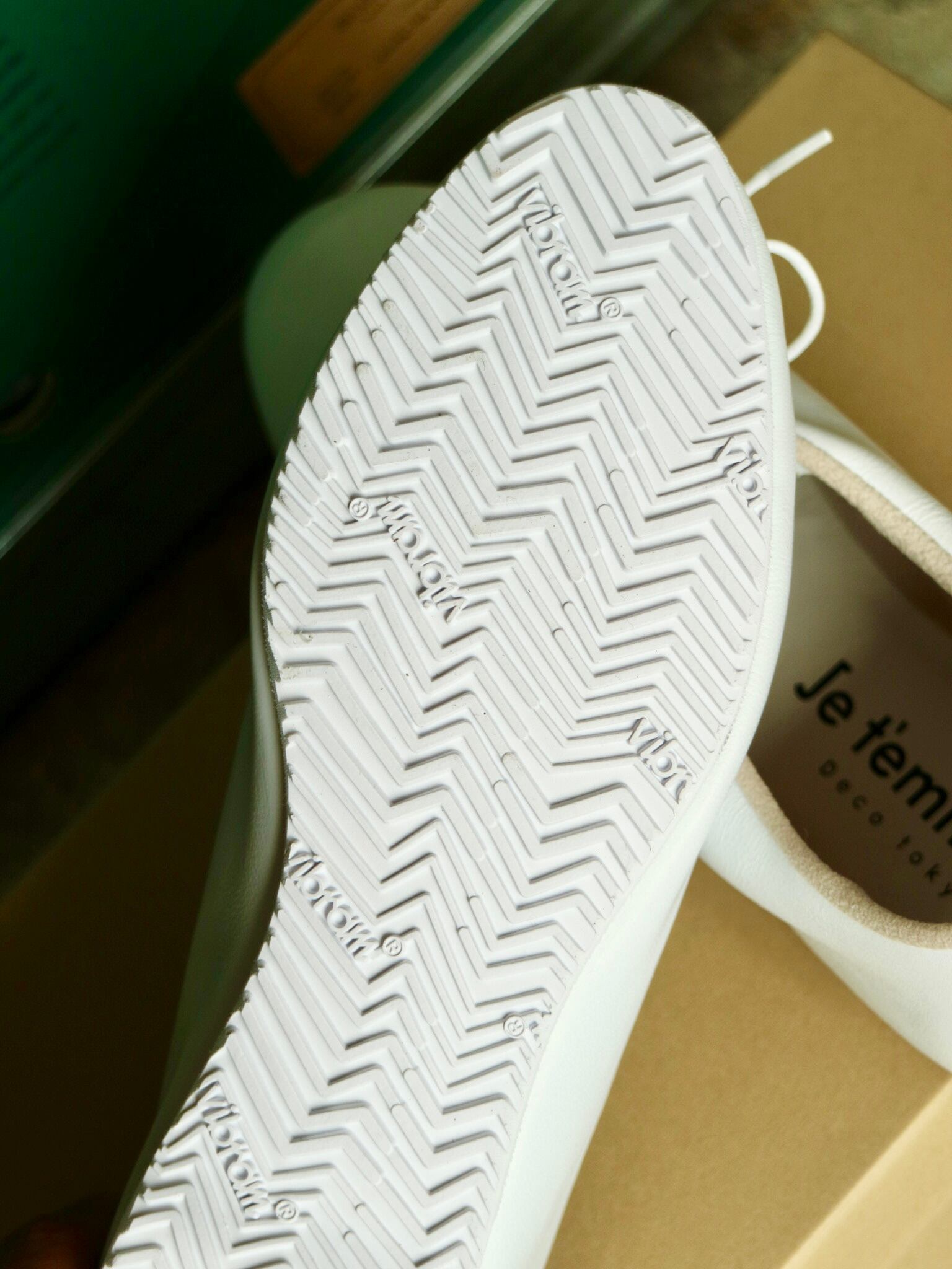 東京・浅草に工房を構えるメイドインジャパンのシューズブランド『Je t'emmène(ジュトメンヌ)』の代表的な一足JAZZフラットシューズです。踵やつま先に芯材が無くさらに中底と呼ばれる靴底の芯のような部材も入っていないフレキシブルなシューズ。