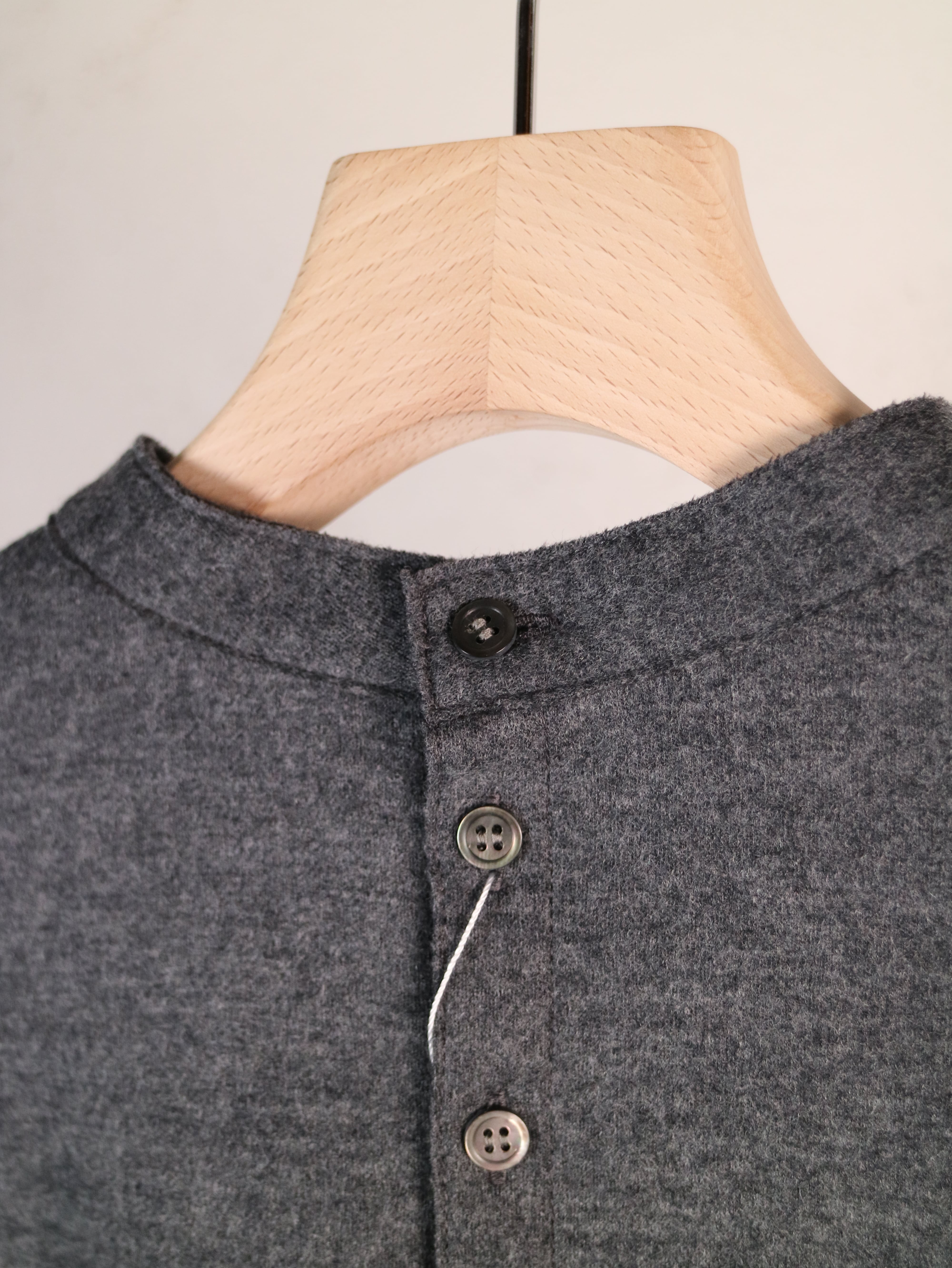 ブラウスのような雰囲気のウール100%のニットトップス。