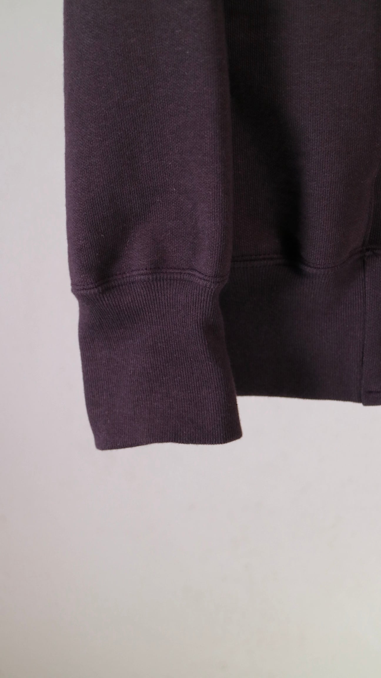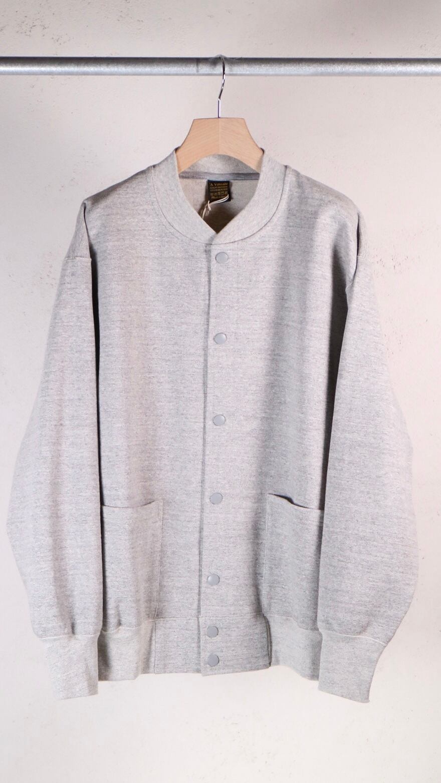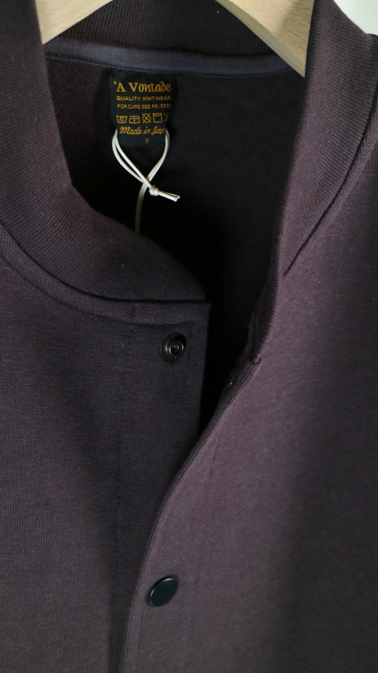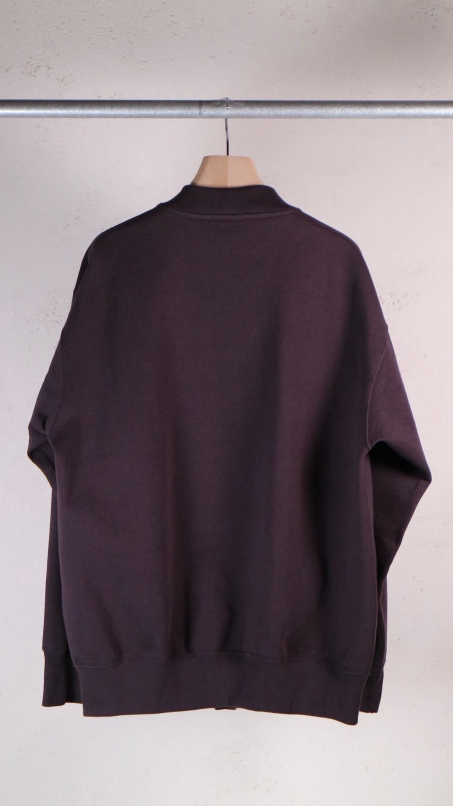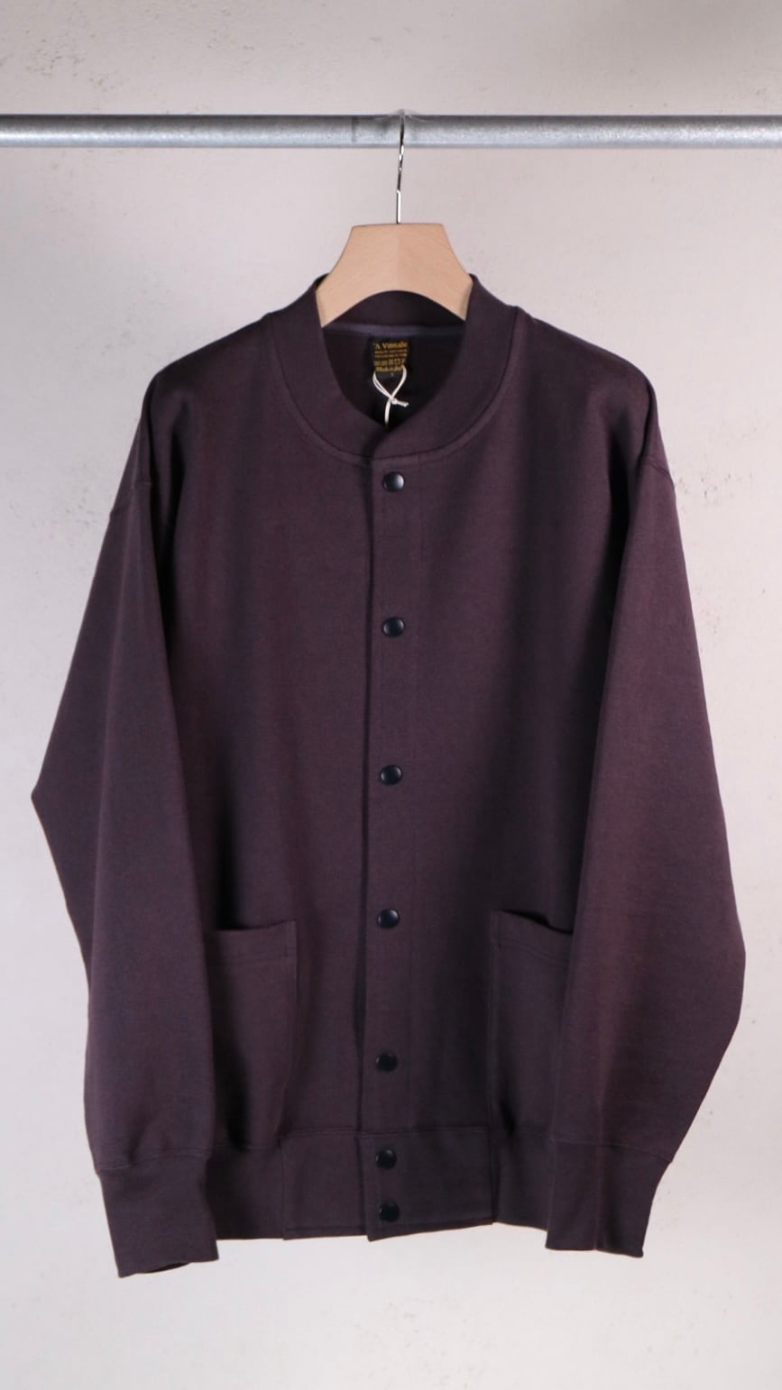 ハイゲージで編まれたかなり短いパイルの裏毛を使用したスウェットカーディガン。