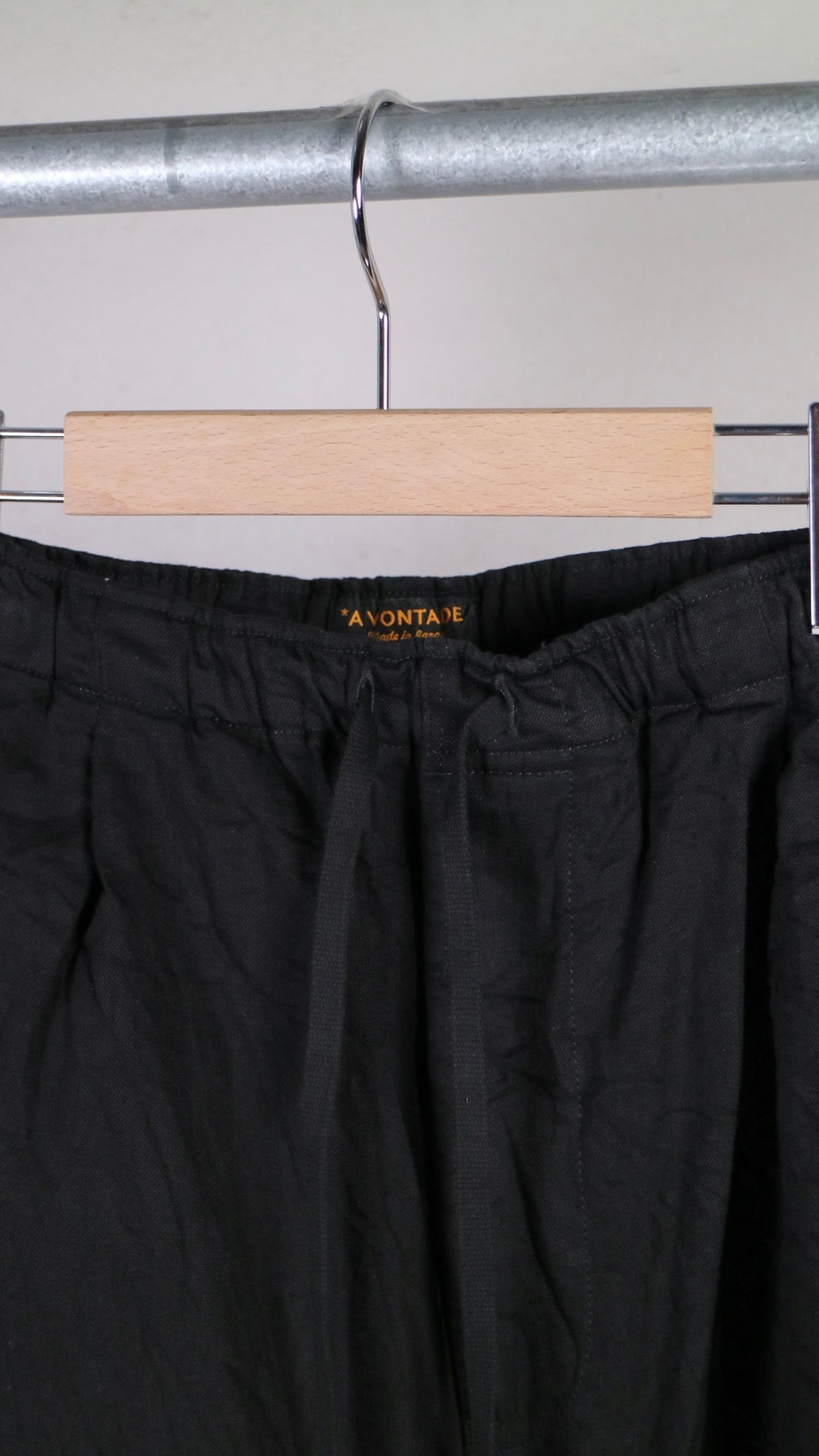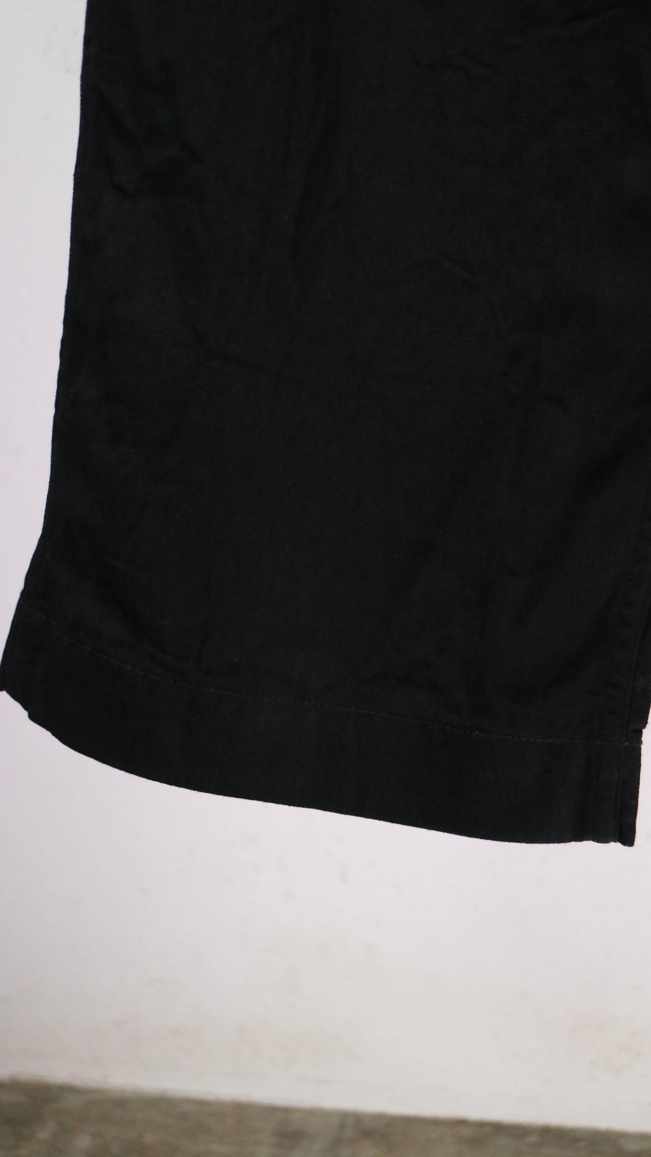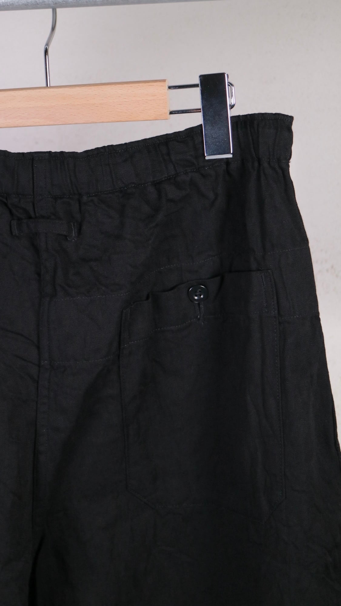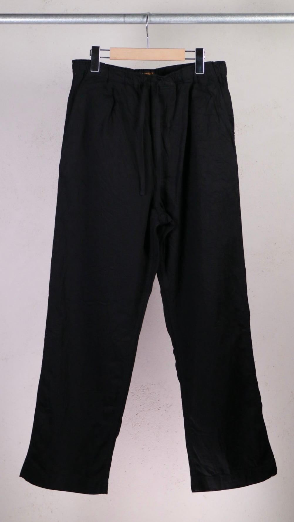 8ozの軽いブラックデニム素材のウエスト総ゴムのイージーパンツ。