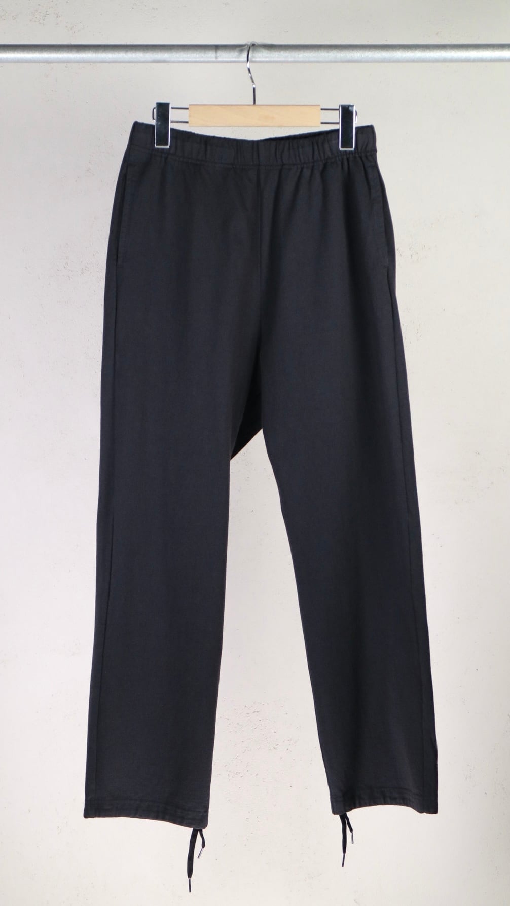 フィルメランジェの天竺(Tシャツに多く用いられる編み方の生地)素材の中では最も張りがありしっかりとした印象のエアスピン天竺を用いたカットソーのイージーパンツ。