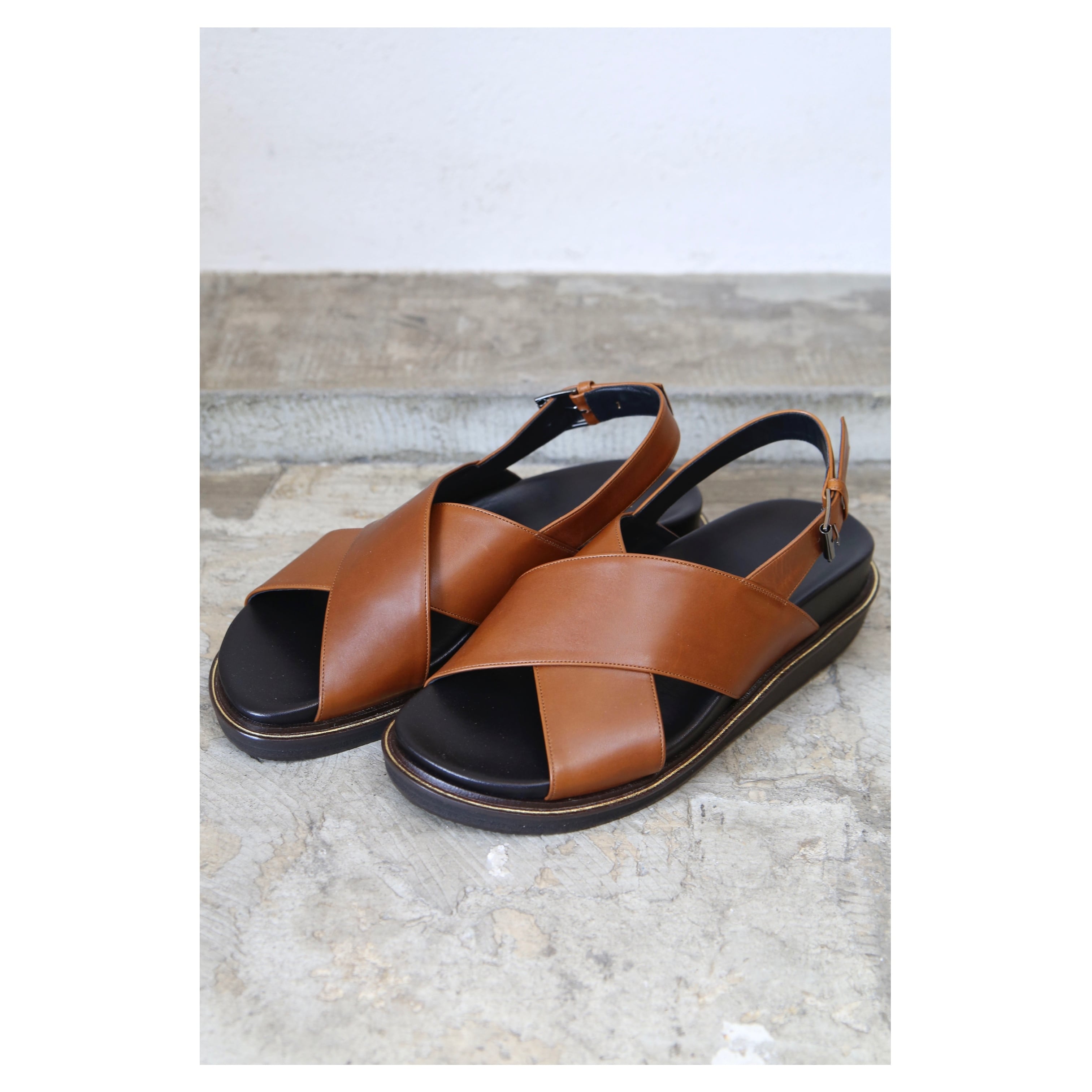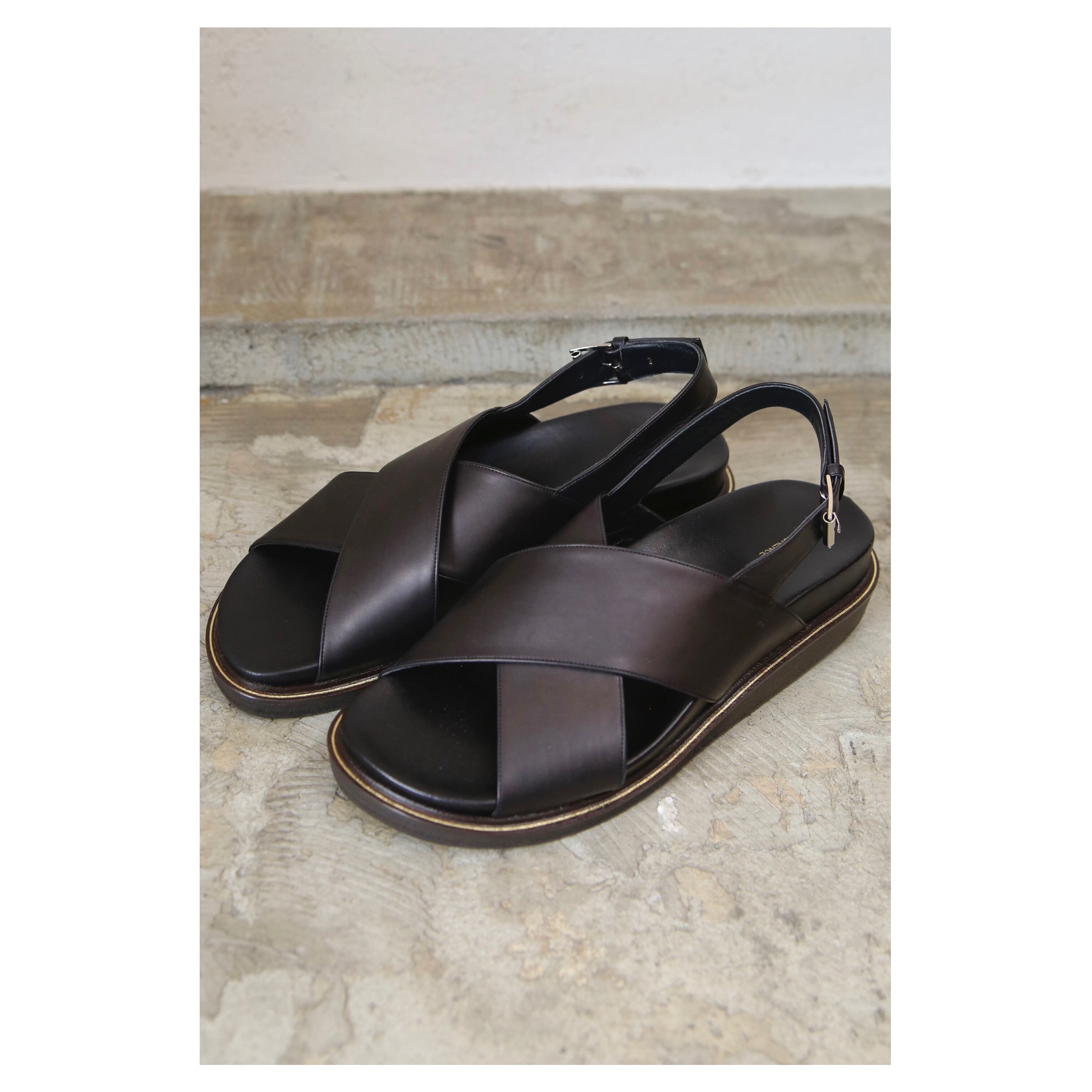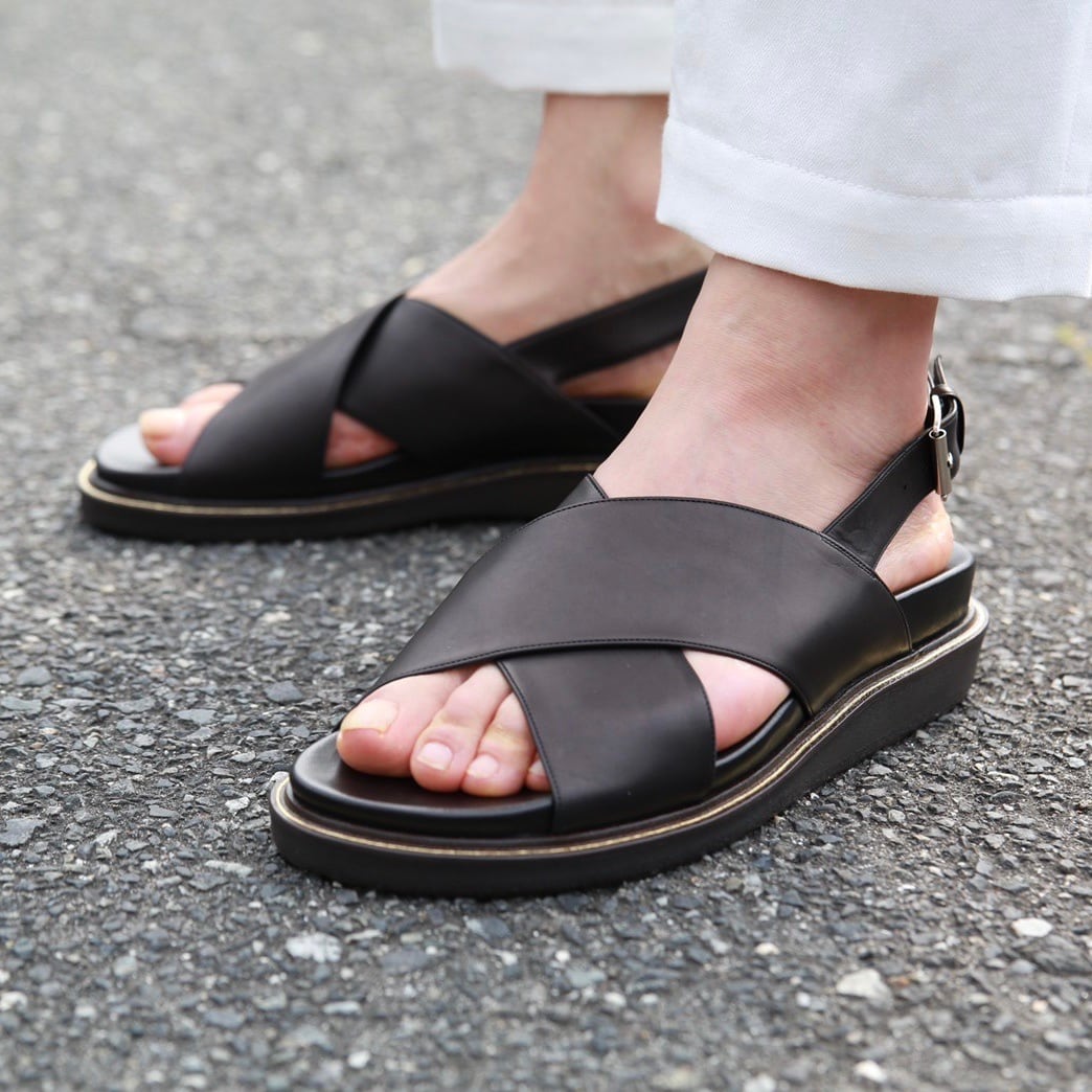 カジュアルになりがちなサンダルですが最高級のベビーカーフ、デザインの美しさで見事にバランスが保たれ、様々なコーディネートに対応してくれます。