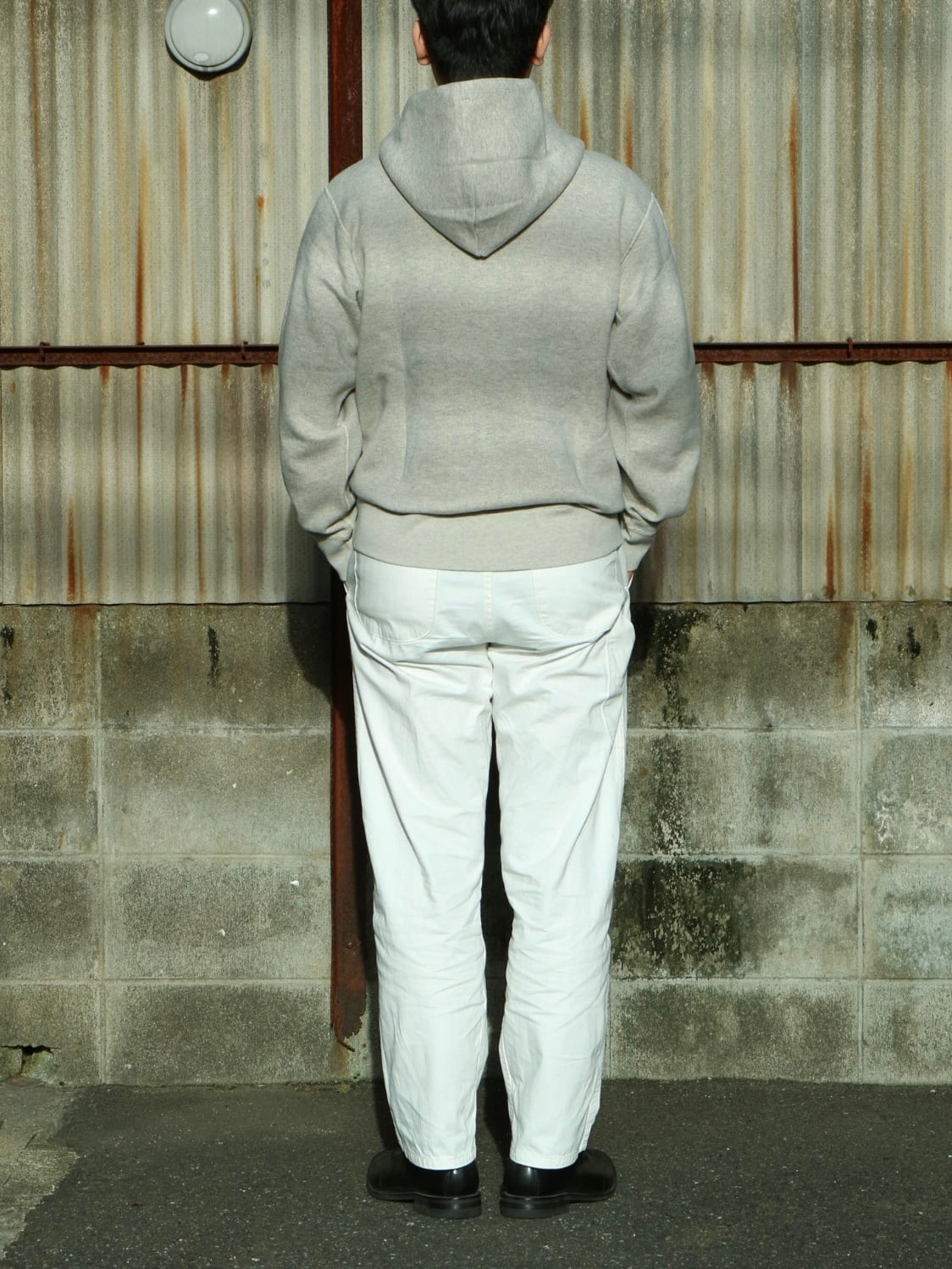 コットンベースのパーカーとしてはフィルメランジェ最高峰の裏毛『ラディー裏毛』を使用したプルオーバータイプのパーカー。