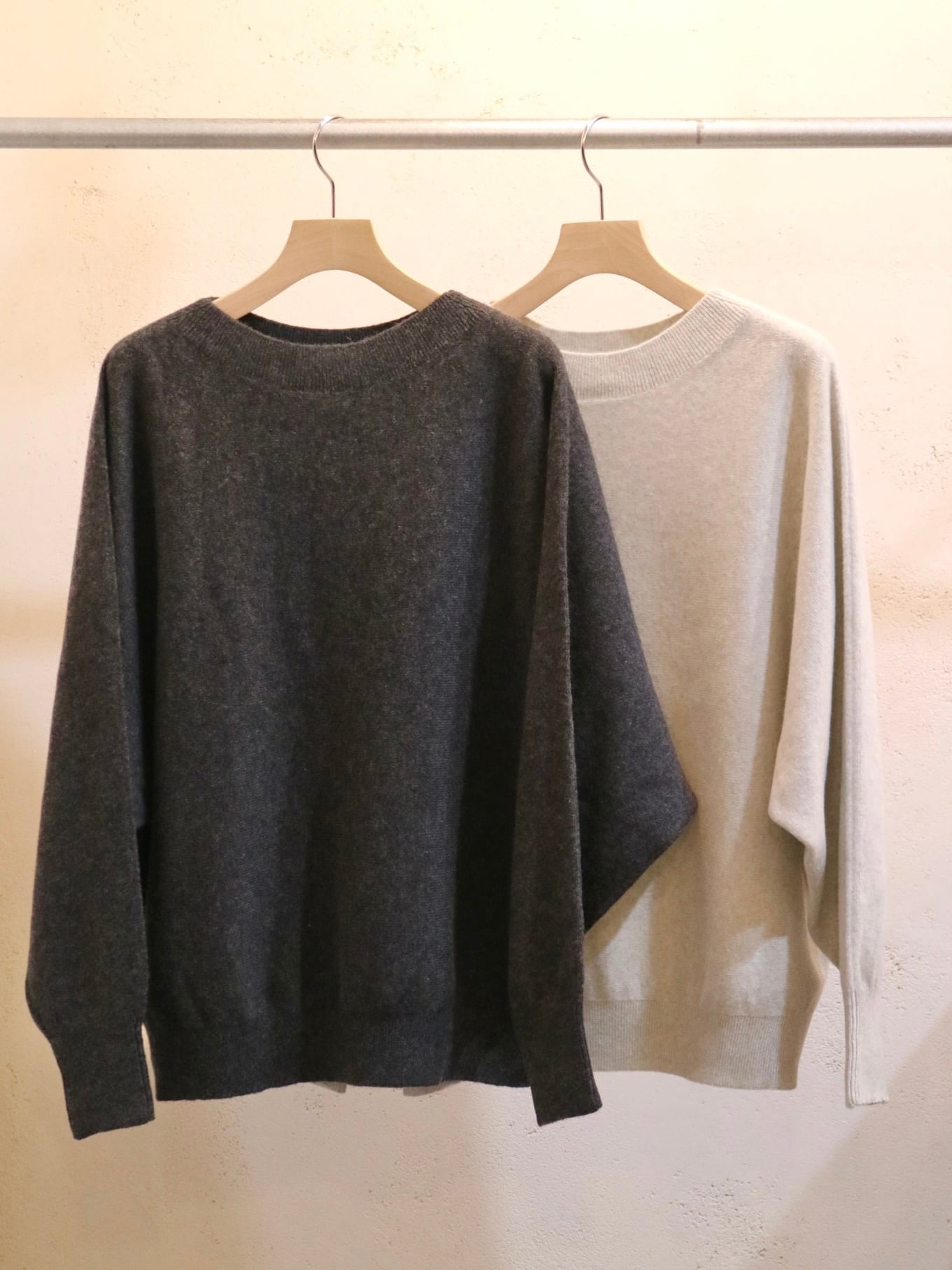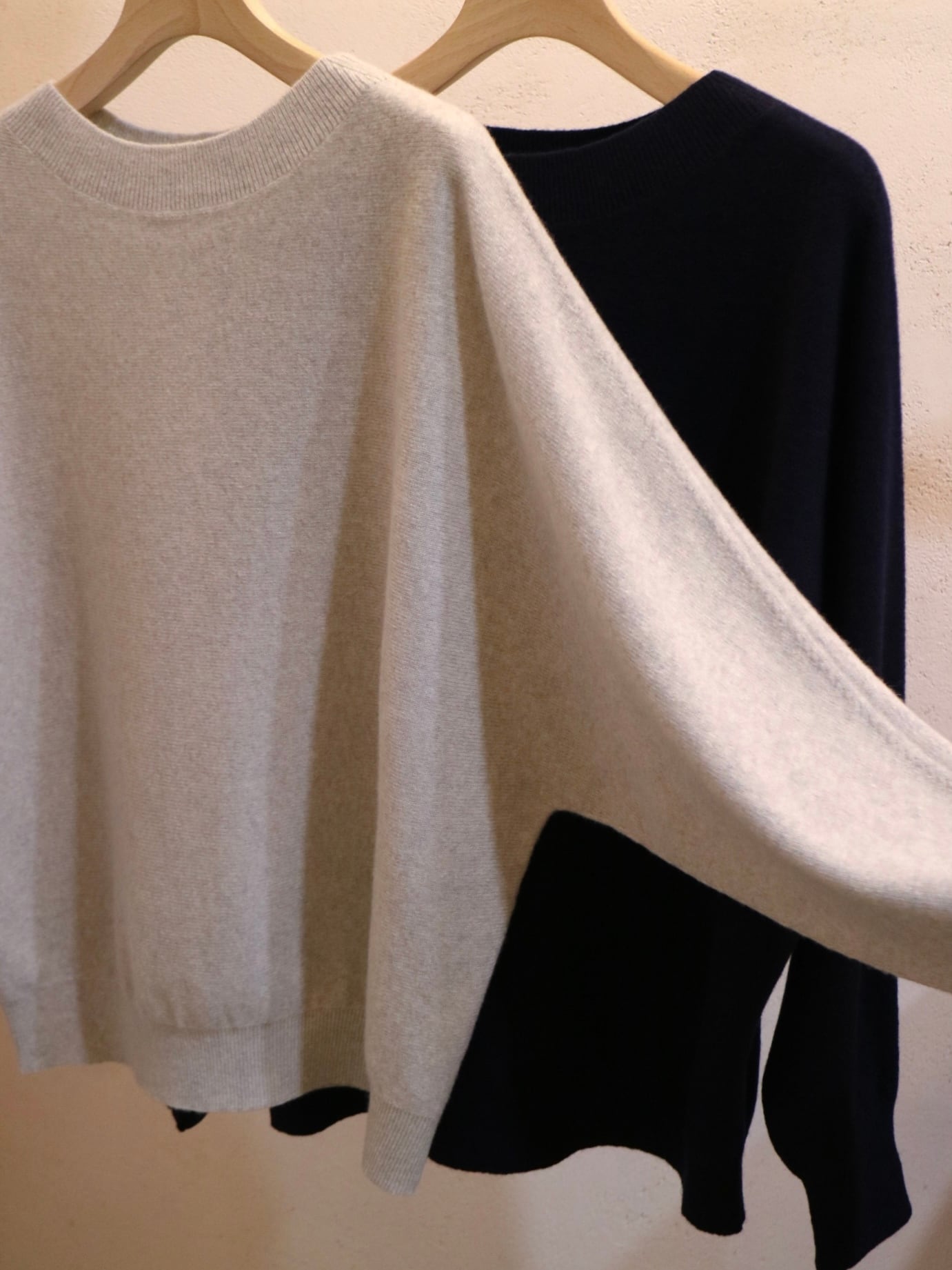 オーストラリア産のラムウールを使用したドルマンスリーブのニットトップス。